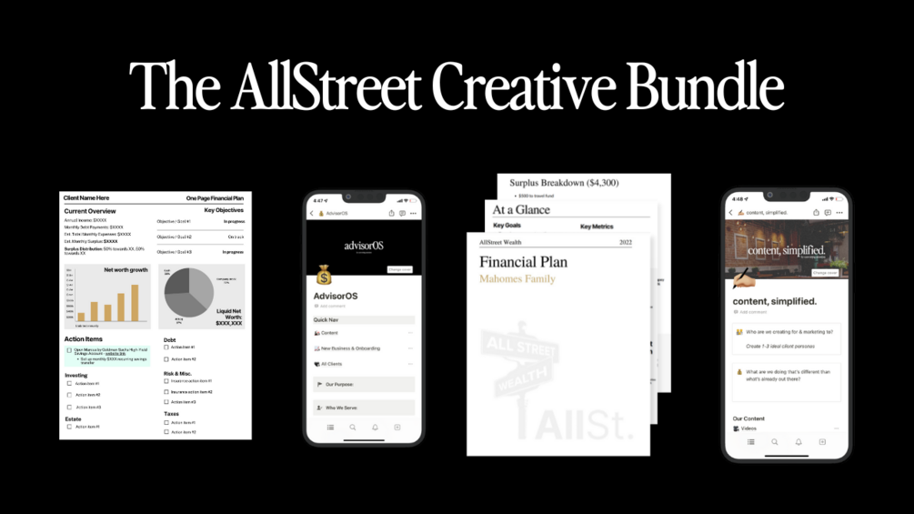 The AllStreet Creative Bundle was designed to help Independent RIAs give more actionable financial advice, create better content, and run a better business.